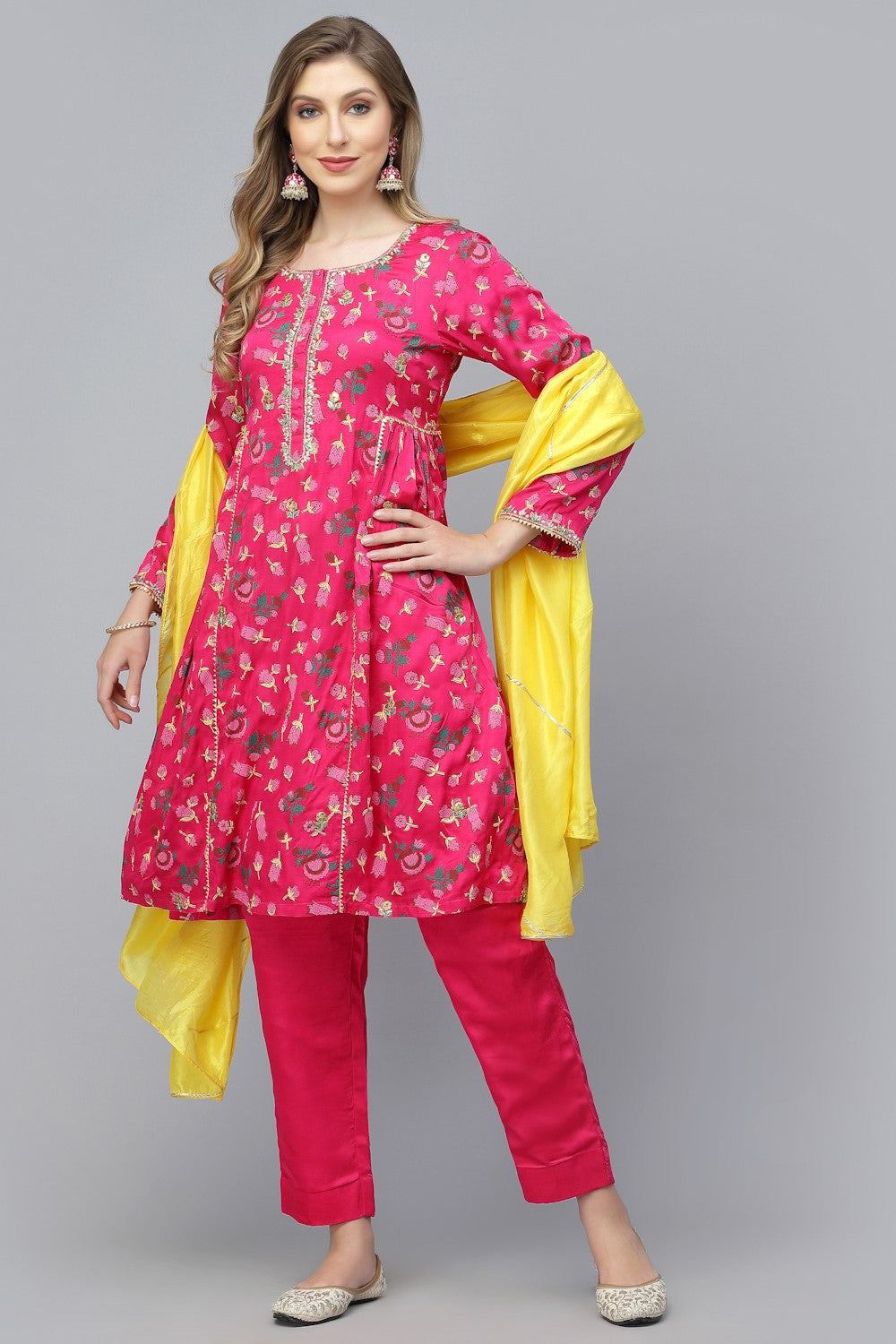 Jhilmil Kameez Set - Fuchsia