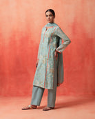 A graceful blend of tradition and subtle elegance, this duck grey kurta features delicate hand embroidery highlighted with fine contrast piping for a modern edge. Paired with straight-cut trousers and a matching dupatta, it’s perfect for festive gatherings or refined daywear.