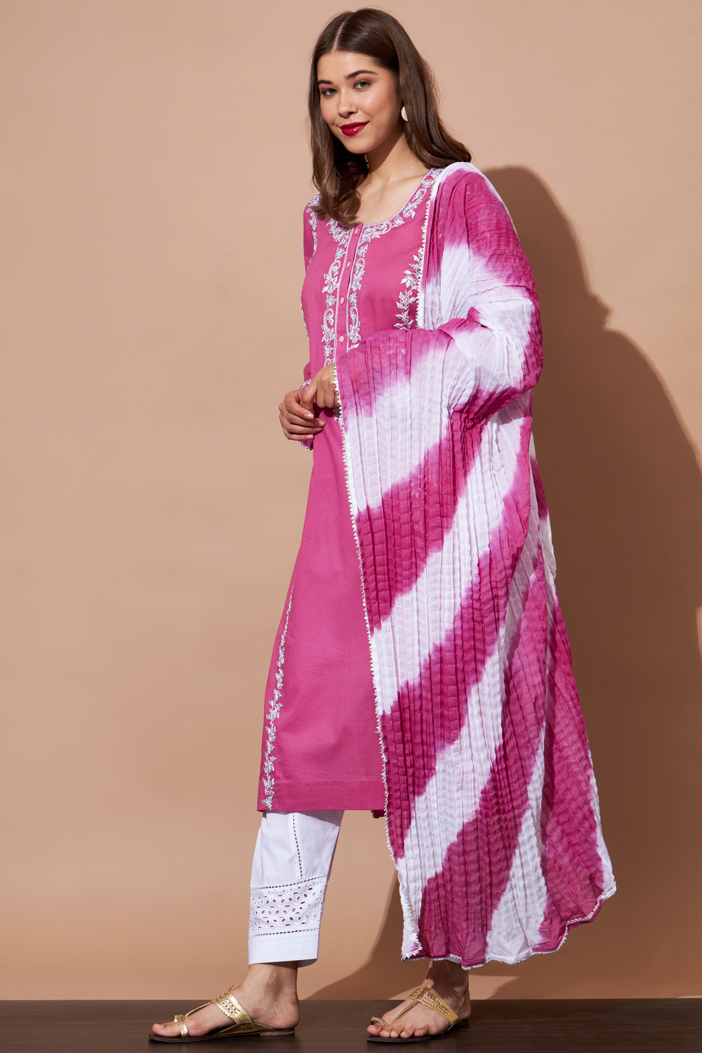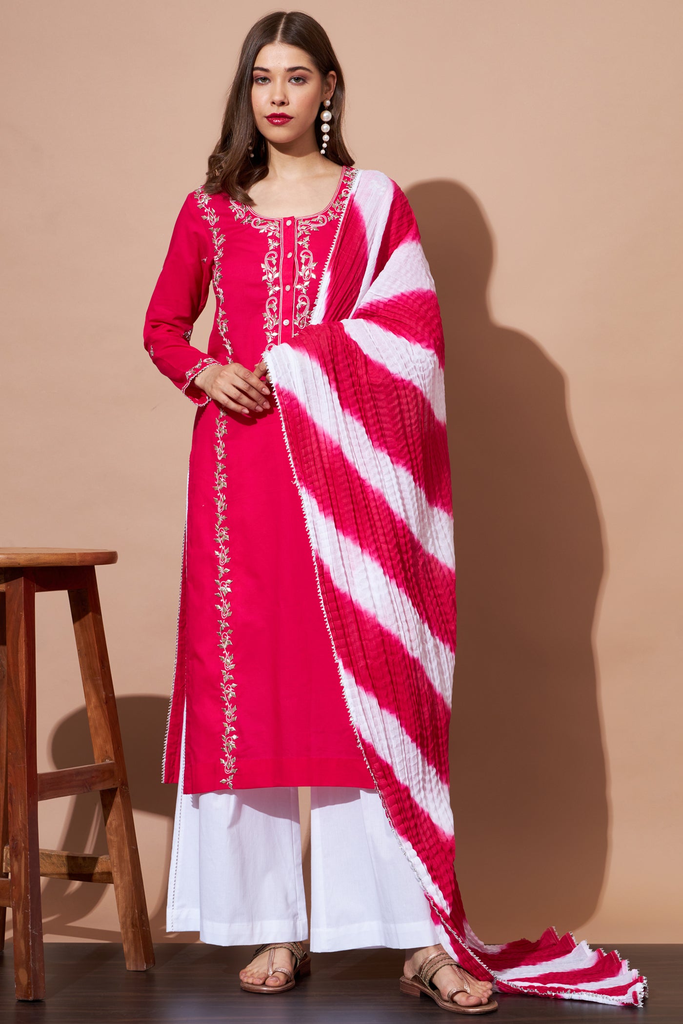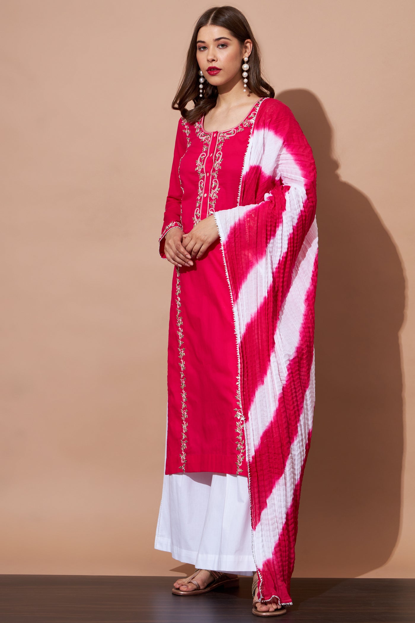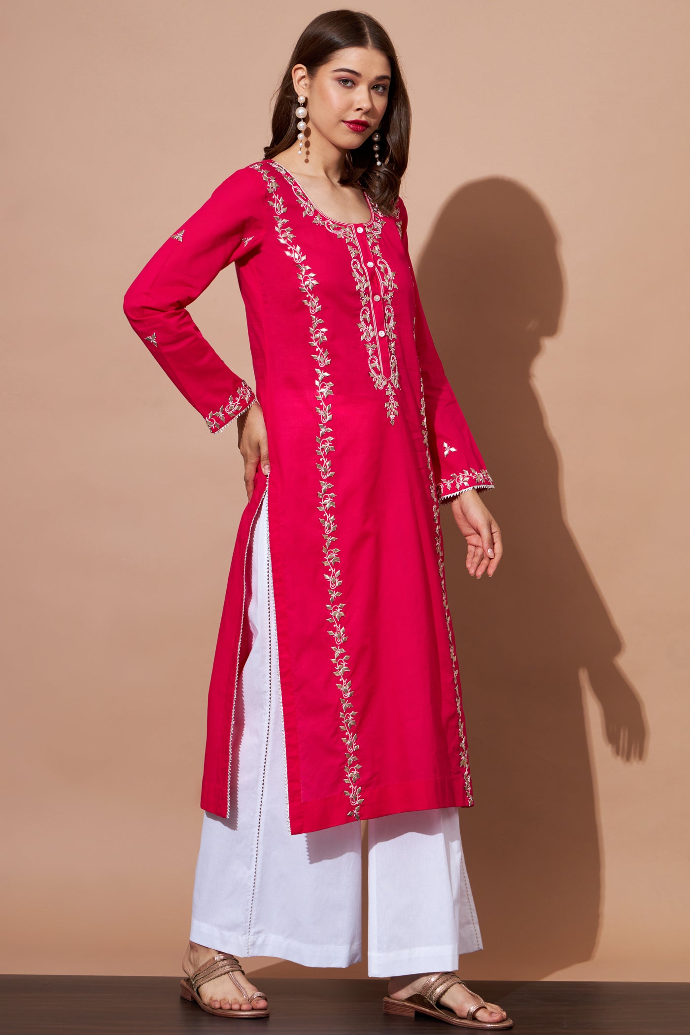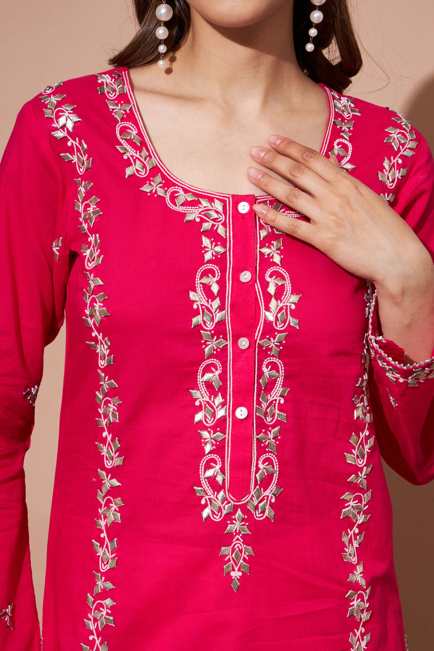 GOTA Kurta Set- Majenta