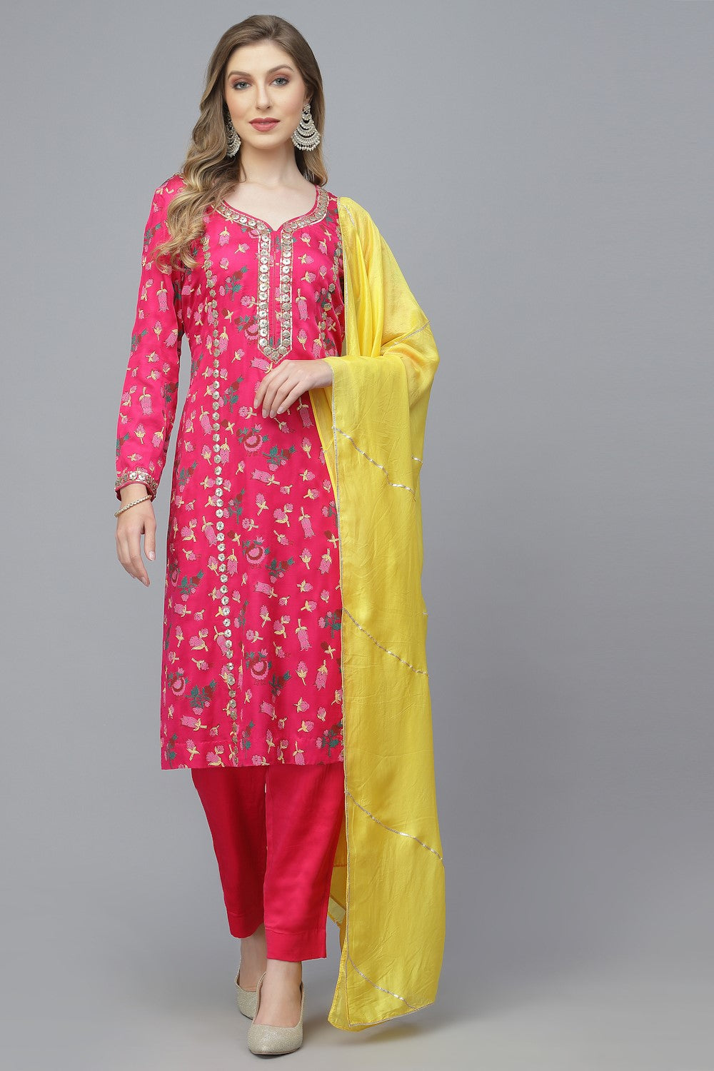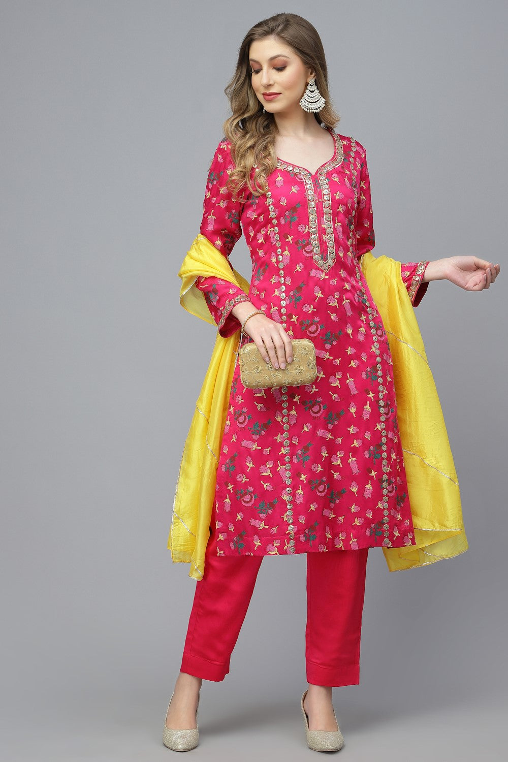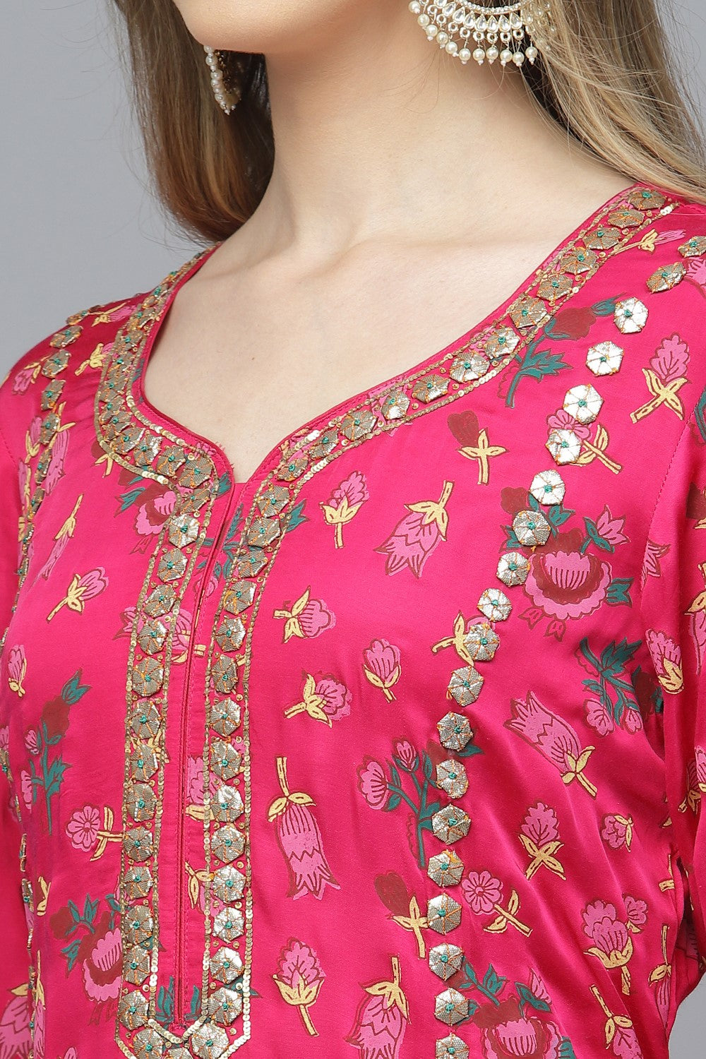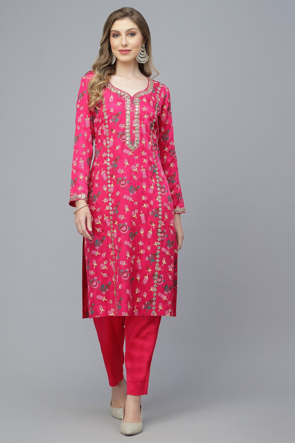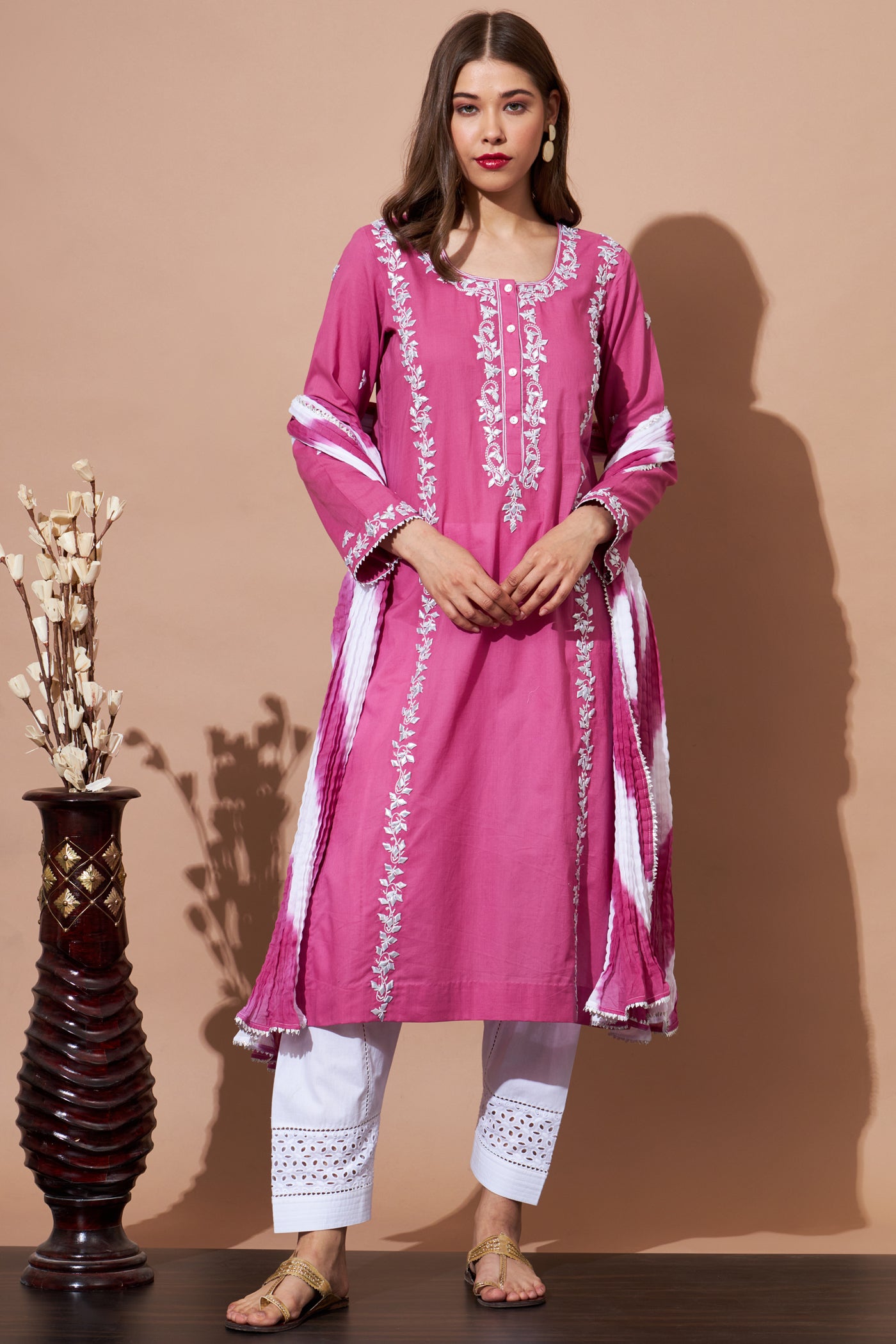 GOTA Kurta Set- Majenta