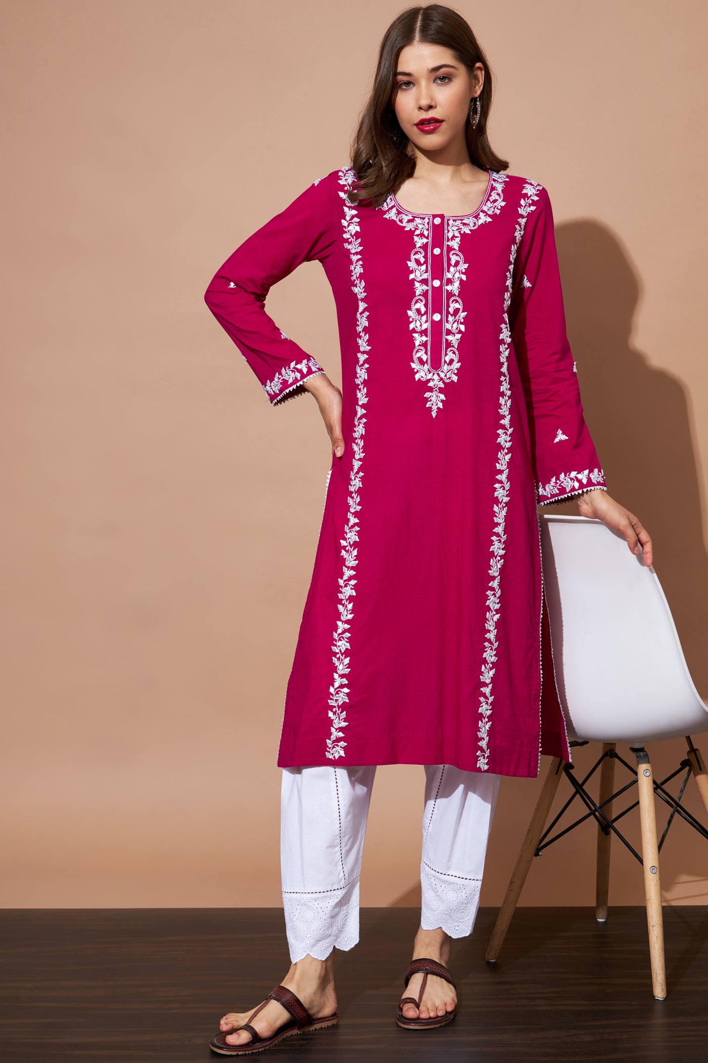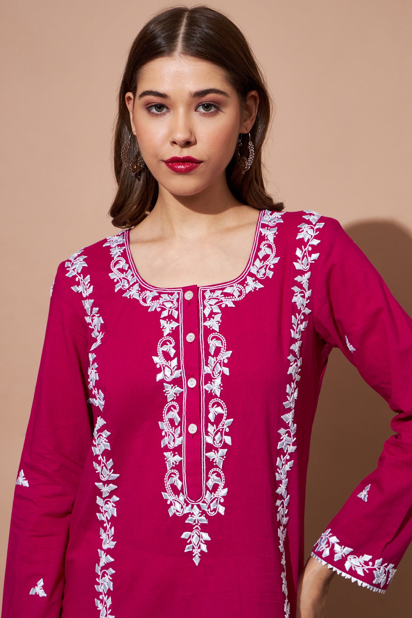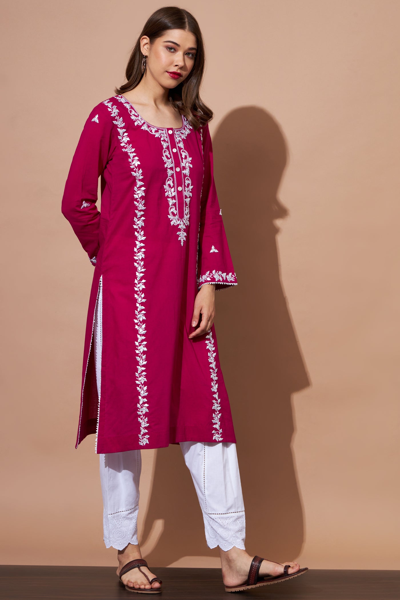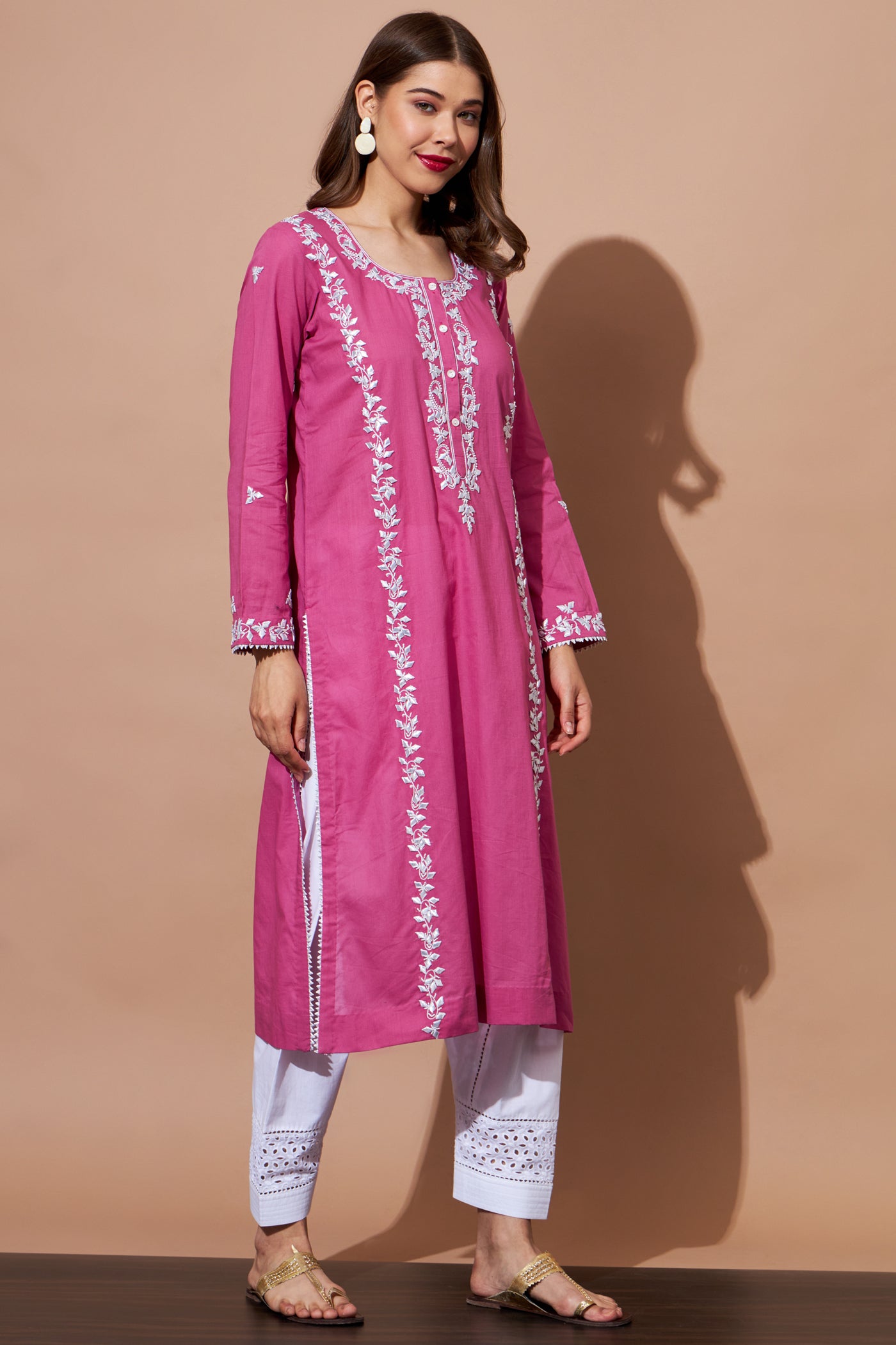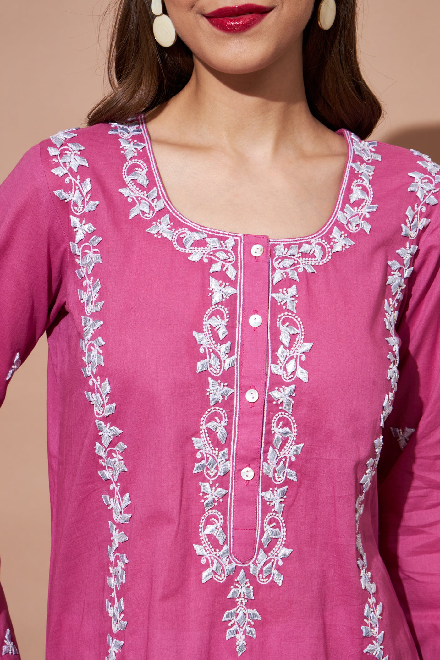 GOTA Kurta Set- Fuchsia