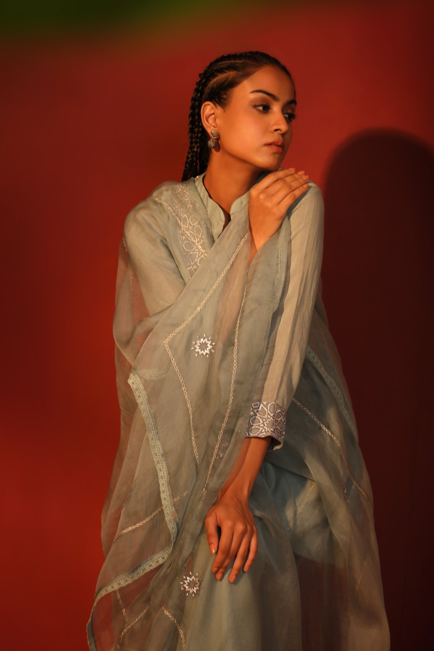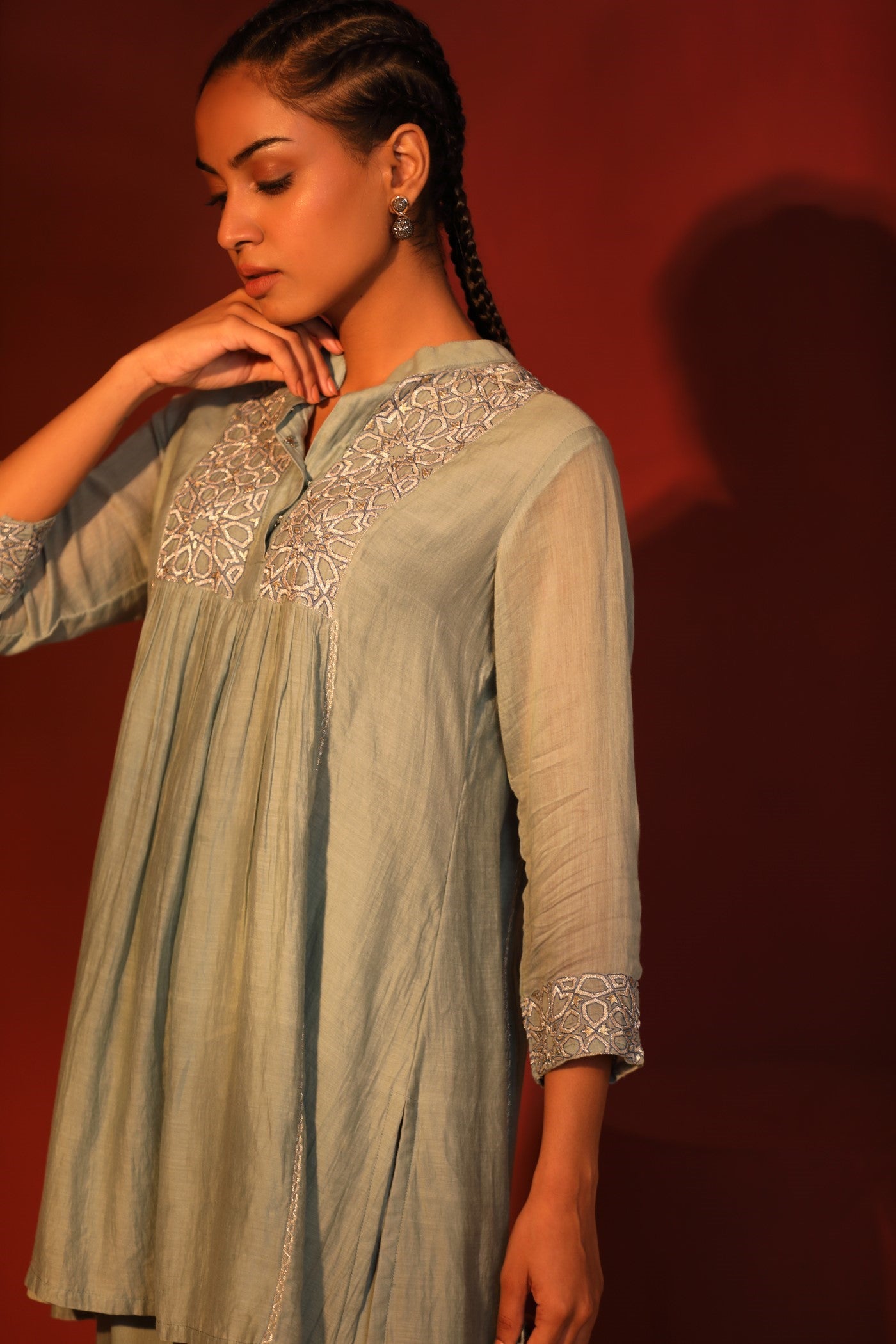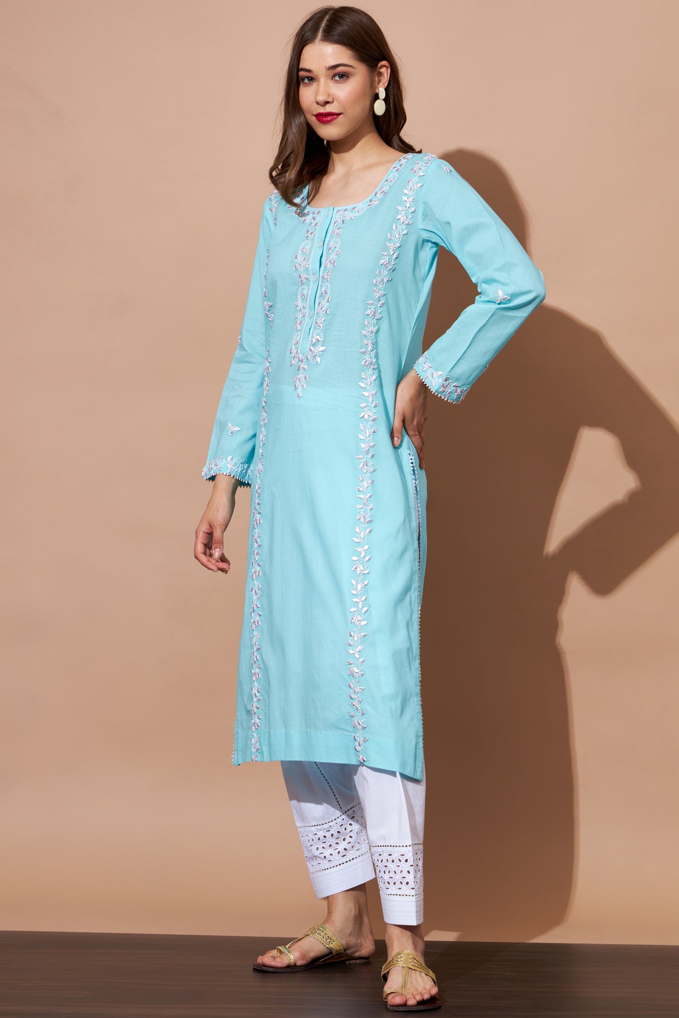 GOTA Kurta Set- Aqua Blue