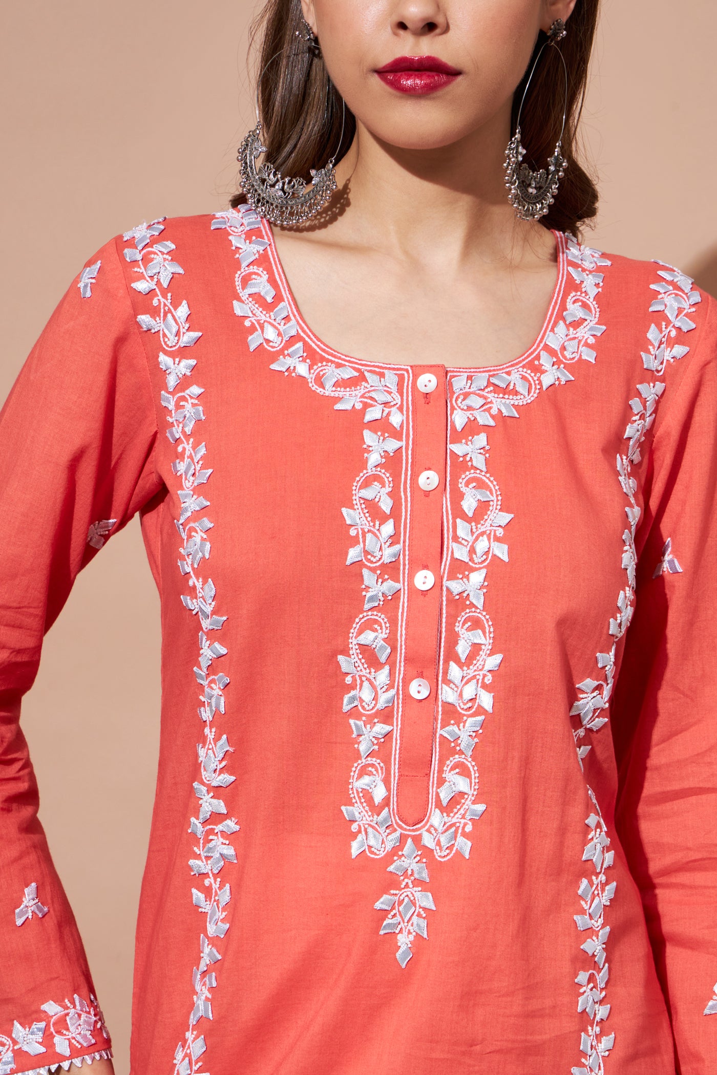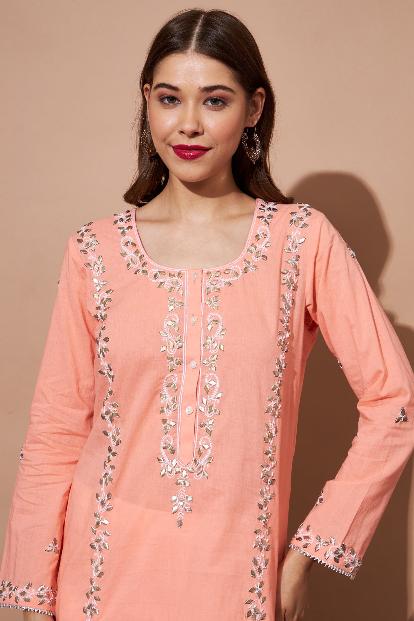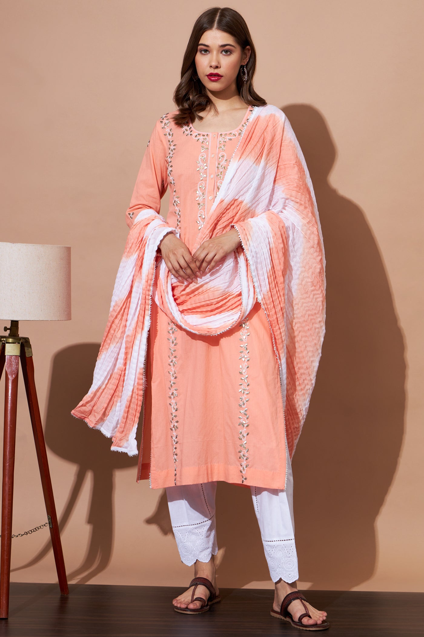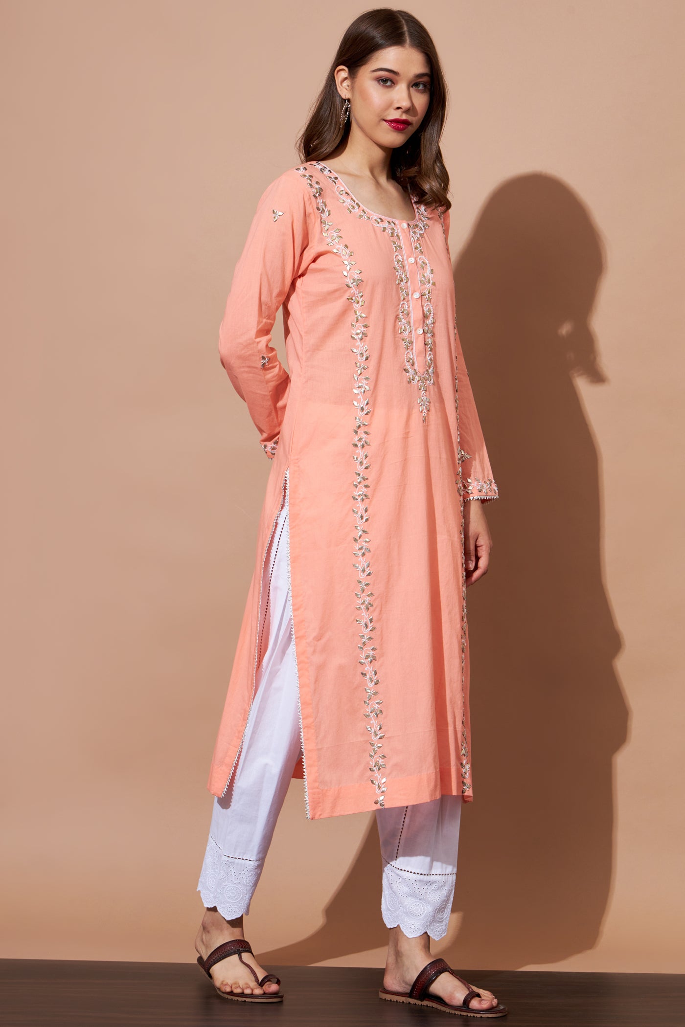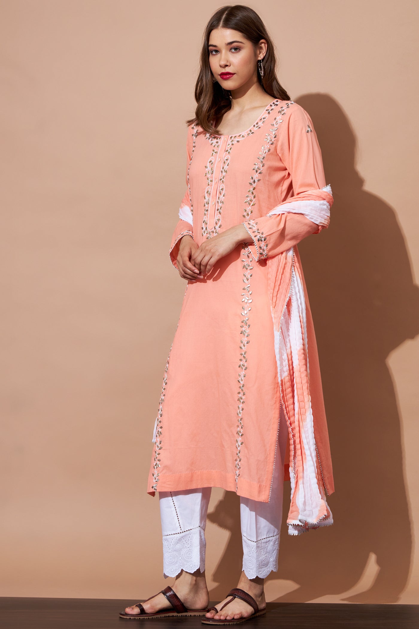 GOTA Kurta Set- Peach