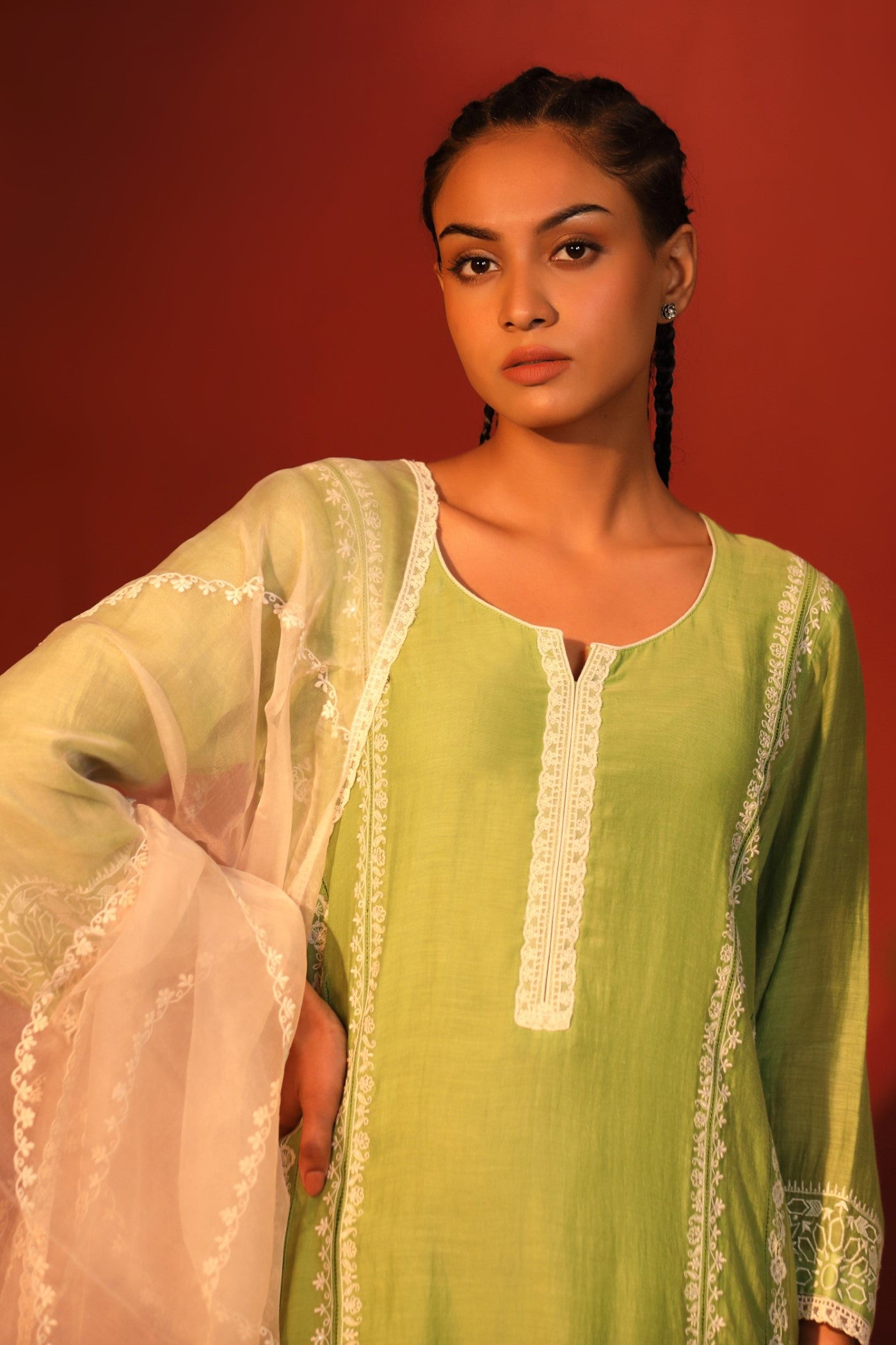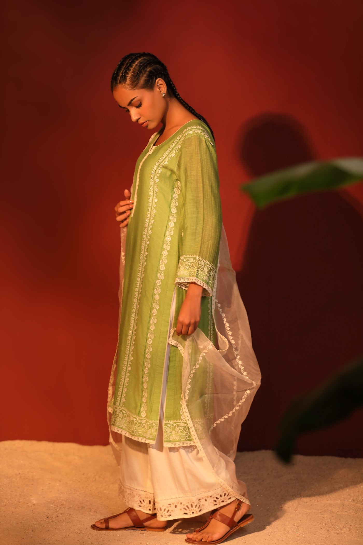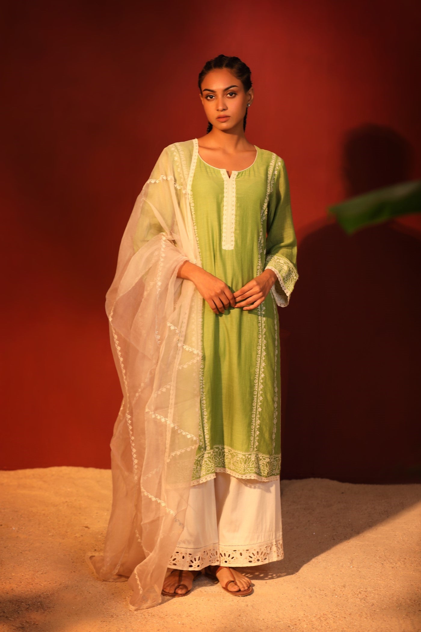 GOTA Kurta Set- Mehendi