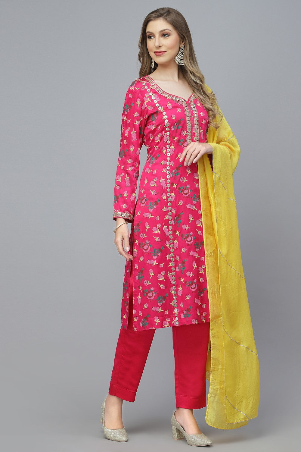 Jhilmil Kameez Set - Fuchsia