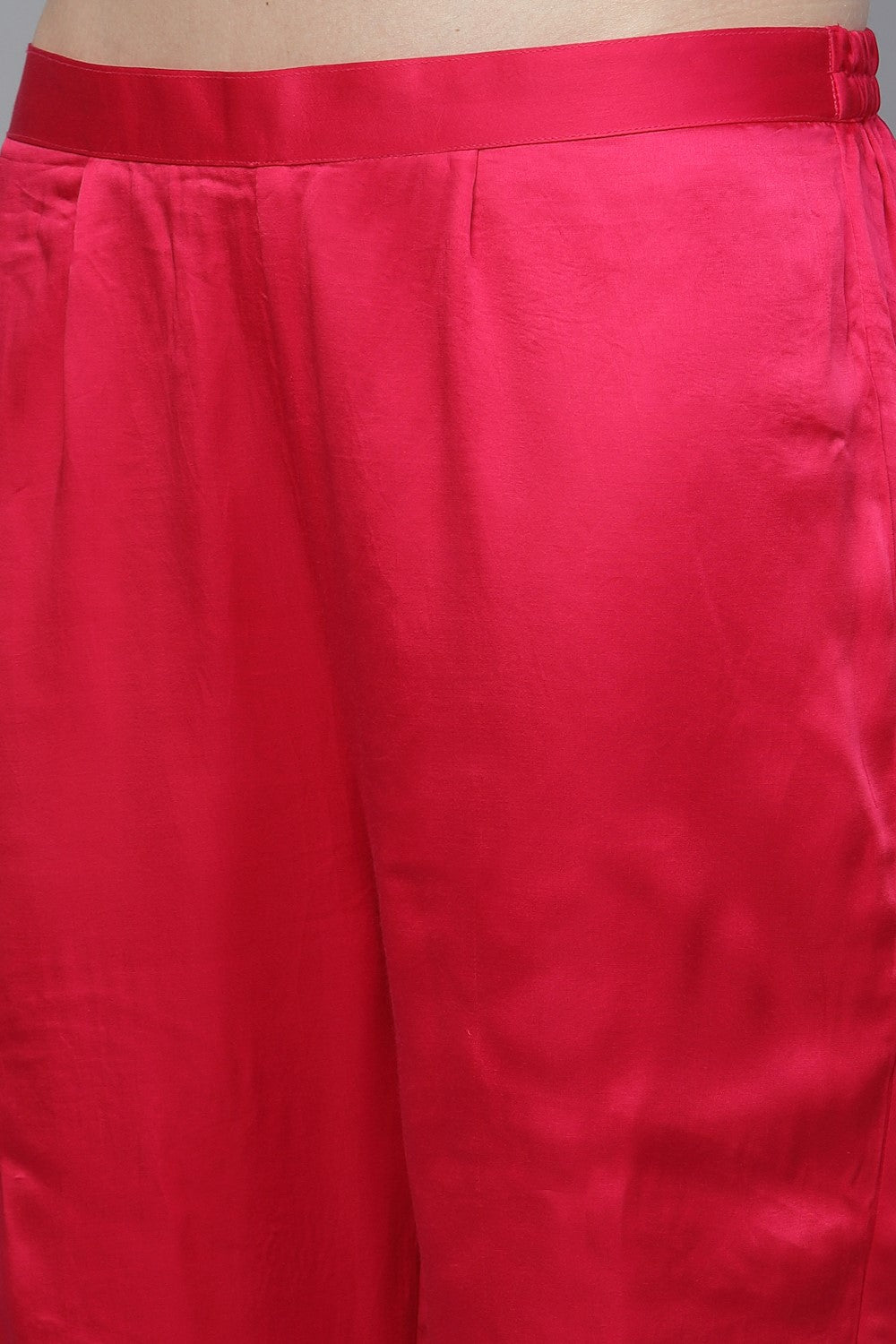 Embroidered Chanderi Kameez With Pants - Carmine